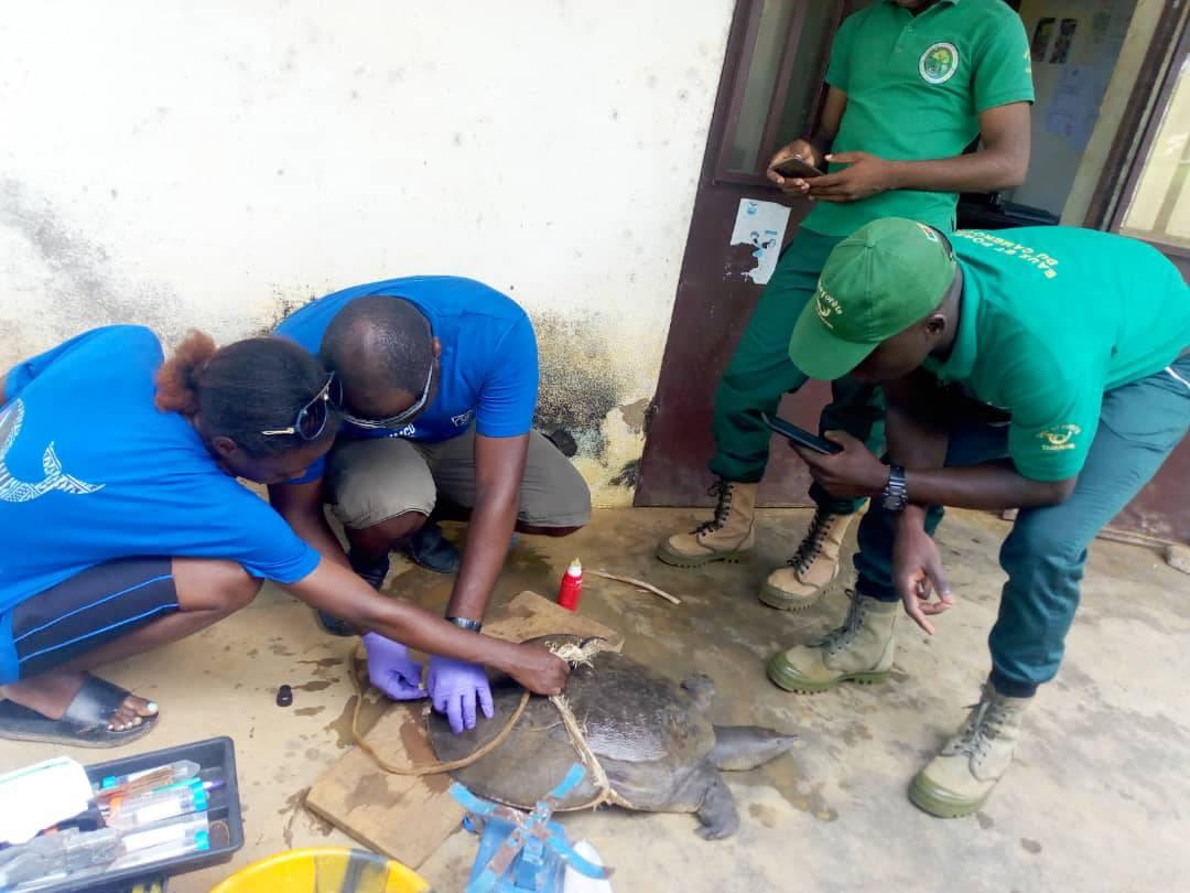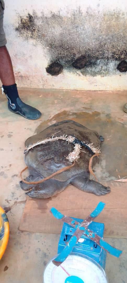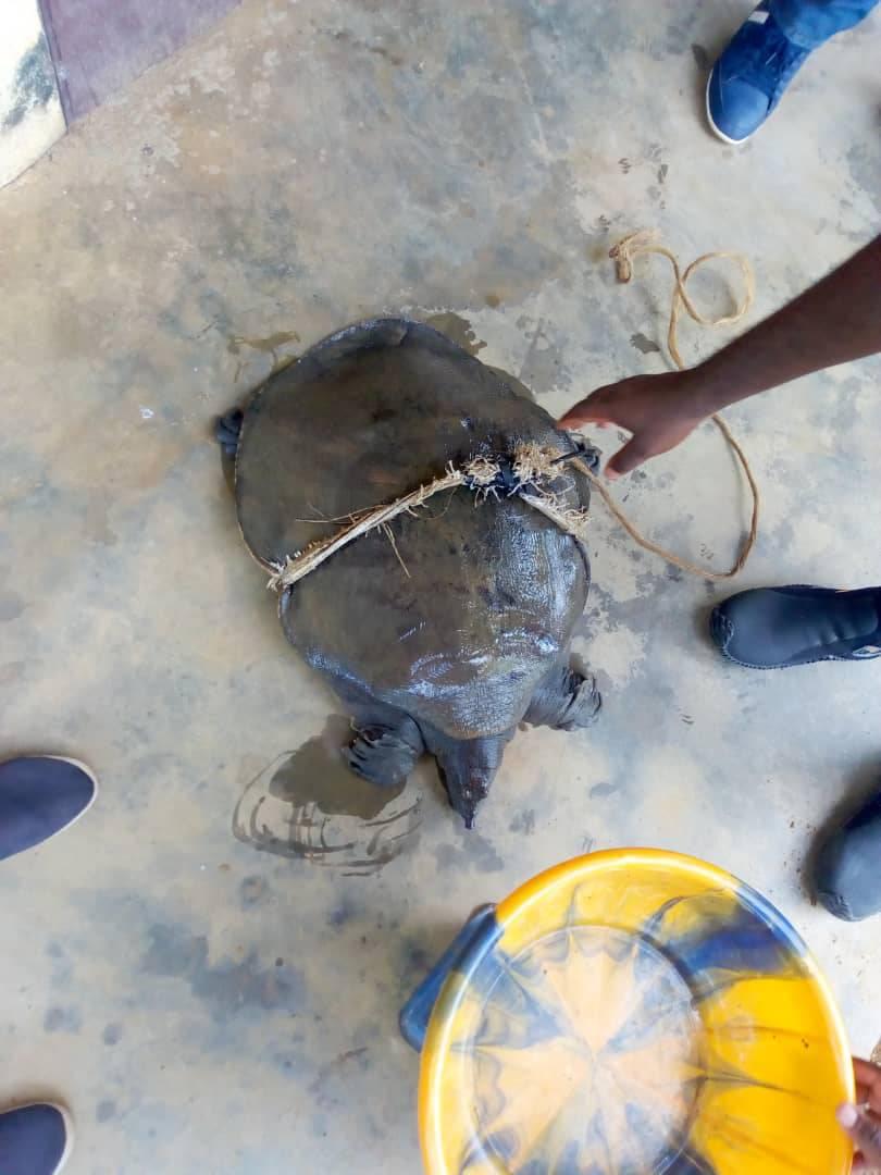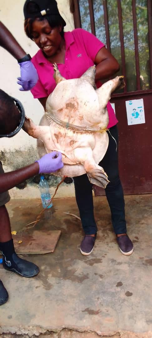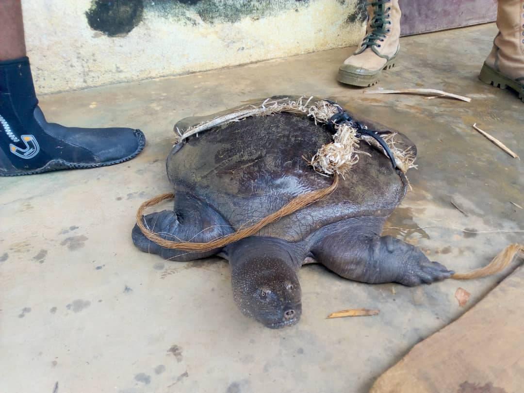 Ce Mercredi 17 Novembre 2021 dans la Réserve de Faune du Lac Ossa, nous avons eu l’immense honneur avec l’équipe de Ammco et le service de la conservation De la Réserve RFLO de récupérer des mais des riverains un animal tellement rare, et donc une espèce protégée.